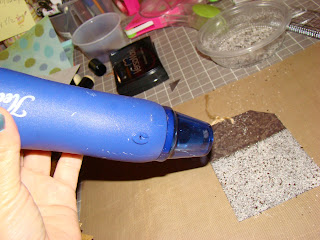 Next, use your heat tool to heat up your tag and activate the enamel: